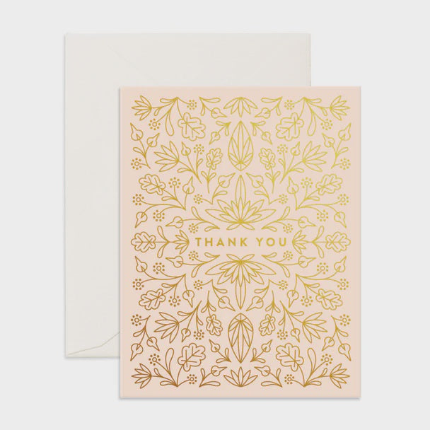108 x 140mm. Material: Warm White Uncoated Card Stock. Process. Full-color + Foil Stamp. Features: Blank Interior. Foil: Metallic Gold Foil. Envelope: Cream. Origin: Made in Australia.