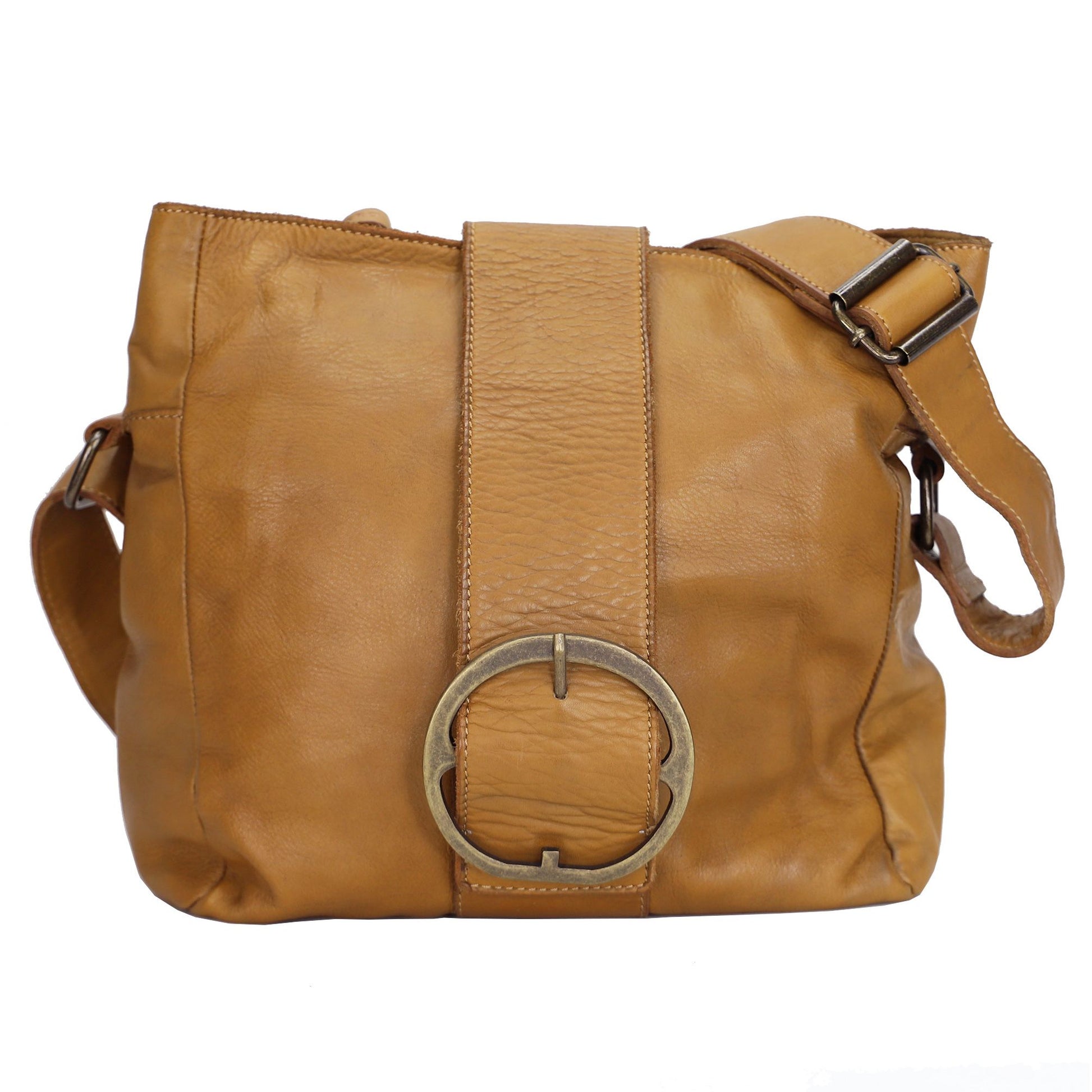 Inaya is a larger crossbody bag that is designed with an adjustable crossbody strap. She is securely fastened with a zip closure and a magnetic flap that features a large antiqued metal buckle. Internally she has a zipped pocket and a smaller pocket. Externally there is a pocket on the back that is perfect to fit your phone or your cards into.
