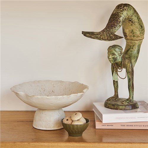 The animated, asymmetrical shapes of the Inlet collection demand attention in any room. These serveware pieces can double as pure decorator items, with the angular profile and irregular speckle pattern delivering a truly unique appearance. Made of stoneware, each piece is finished in a reactive matte glaze in a mottled oyster hue.