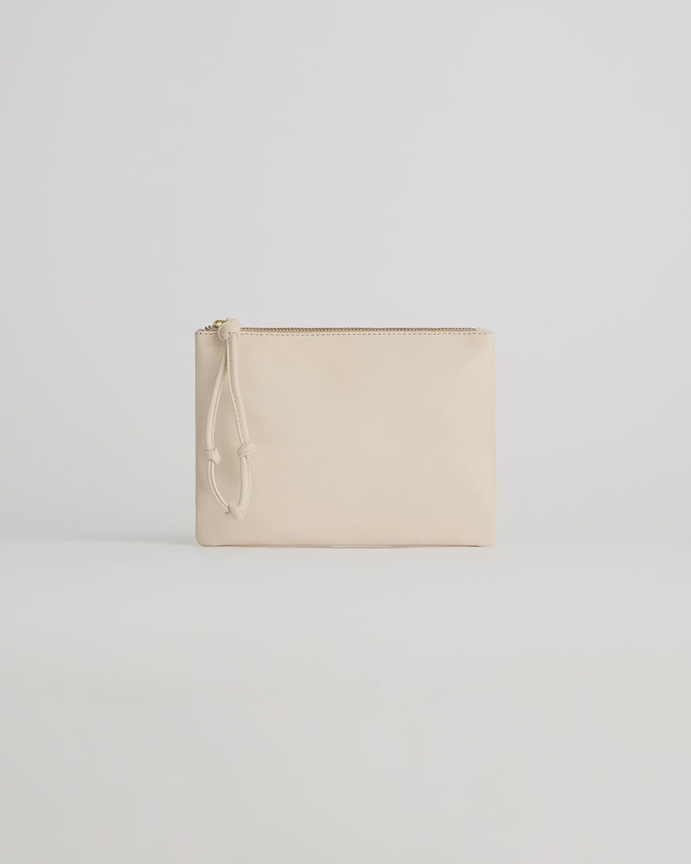 Carry in style with the Juju Clutch. Handmade from lamb leather with cotton lining, this clutch-meets-pouch is the perfect addition to any outfit. The knotted wristlet zip pull and lightweight feel make it an easy companion for the everyday.