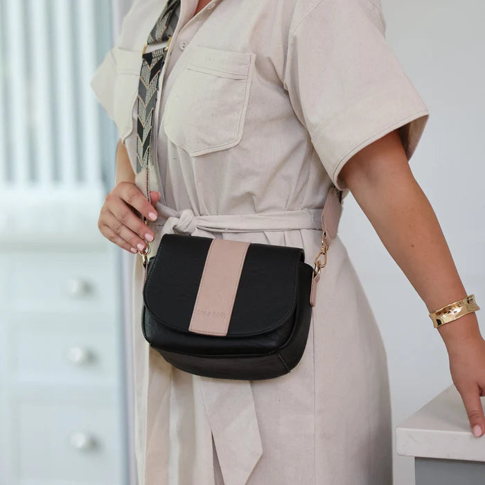 The Lizzie crossbody bag features a soft, rounded silhouette and is crafted from high-quality, lux vegan leather. For added comfort and style, each bag comes with a patterned guitar strap, making it the perfect shoulder bag for work or casual crossbody. The Lizzie offers ample space while remaining compact and light to carry.