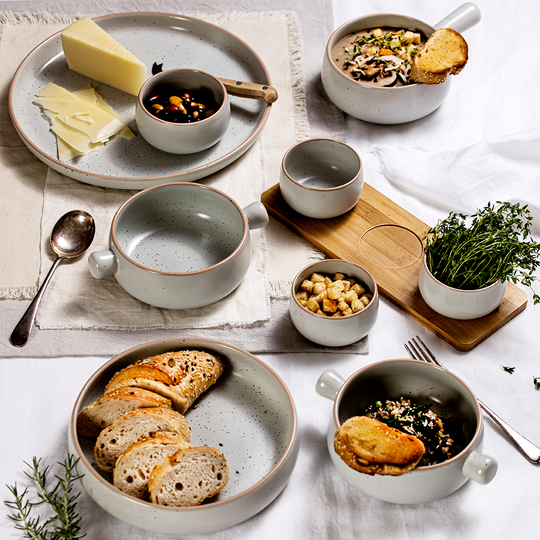 Designed exclusively for Ladelle by British ceramicist Graham Jowitt, Nestle incorporates 70's pottery shapes with a modern matte glaze and mixed metal speckles. Both stylish and practical, Nestle serveware has been designed to withstand everyday use and will have you reaching for these core pieces again and again. Crafted from durable Stoneware and fully glazed, each piece is safe for the dishwasher and microwave (excluding metal and wood parts). It is also oven safe up to 180°C.