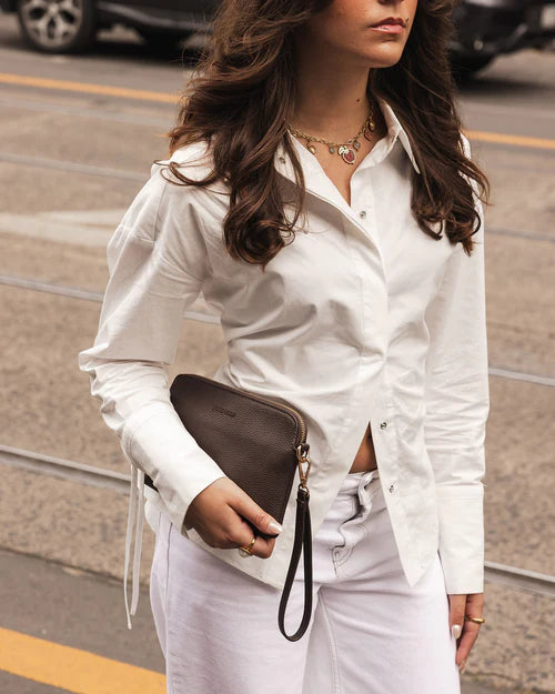 The Louenhide Poppy Chocolate Clutch strikes the perfect balance between minimalism, versatility and style. She's the ideal addition to your tote as a sleek clutch wallet or the perfect grab-and-go companion when carried by the wristlet. Created with soft vegan leather with a compact design, your essentials are organised in the backside pocket while held safe with the secure zip closures. Never go without your essentials and easily adapt to every occasion with the Poppy Chocolate Clutch.