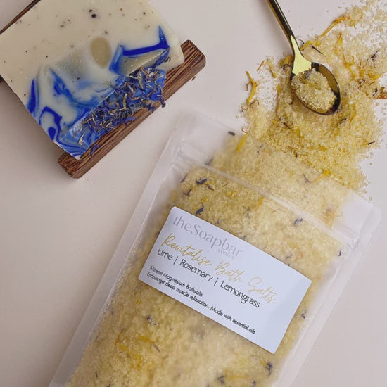 Encourage deep muscle relaxation with these mineral and milk bath salts. Lime, Rosemary and Lemongrass essential oils promote focus and concentration.