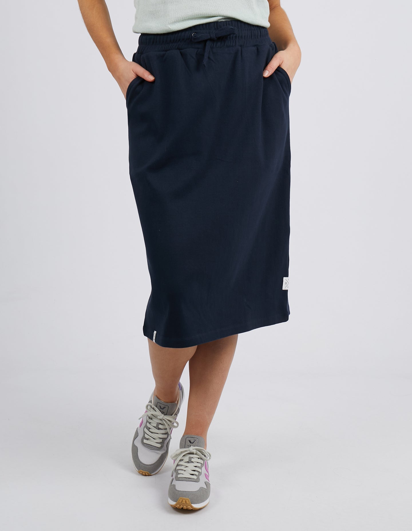 Move With Ease In The New Elm Rib Midi Skirt. This Cotton Elastane Skirt Features An Easy-To-Wear Elastic Pull On Waist And Functional Pockets!