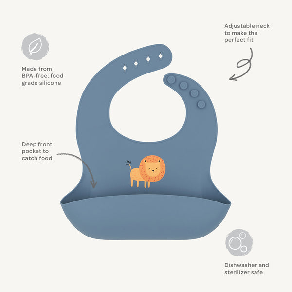 Made from BPA-free, food-grade silicone, this bib is perfect for keeping your little one clean at meal times. Light-weight, soft and durable it has an adjustable neck for the perfect fit. The deep front pocket is perfect for catching food that doesn't make your little one's mouth and is easy to wipe clean ready for their next meal.