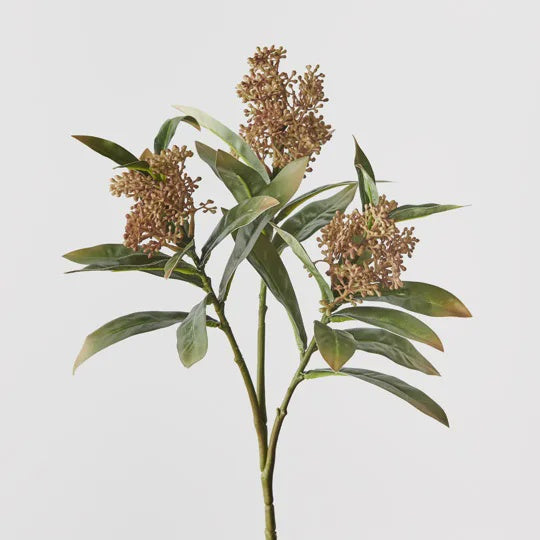 Introducing our Skimmia Spray in rich natural brown tones, a versatile and natural addition to any decor. This artificial spray features clusters of lifelike Skimmia buds and leaves, with vibrant green foliage accented by earthy brown hues. Expertly crafted to capture the authentic texture and detail of real Skimmia, this spray adds a touch of organic elegance to your home or event. Whether used alone or as part of a larger arrangement, it brings a warm, natural charm and maintenance-free beauty to any setting.