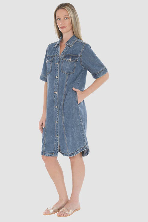 The Soft Denim Short Sleeve Dress is crafted from lightweight, breathable denim for all-day comfort.