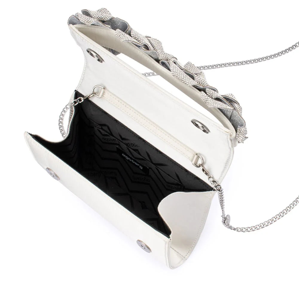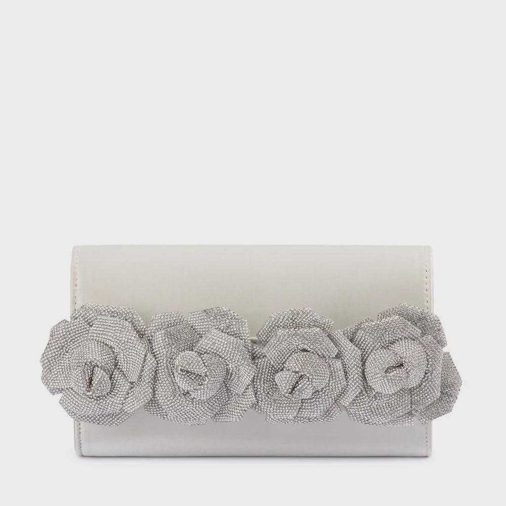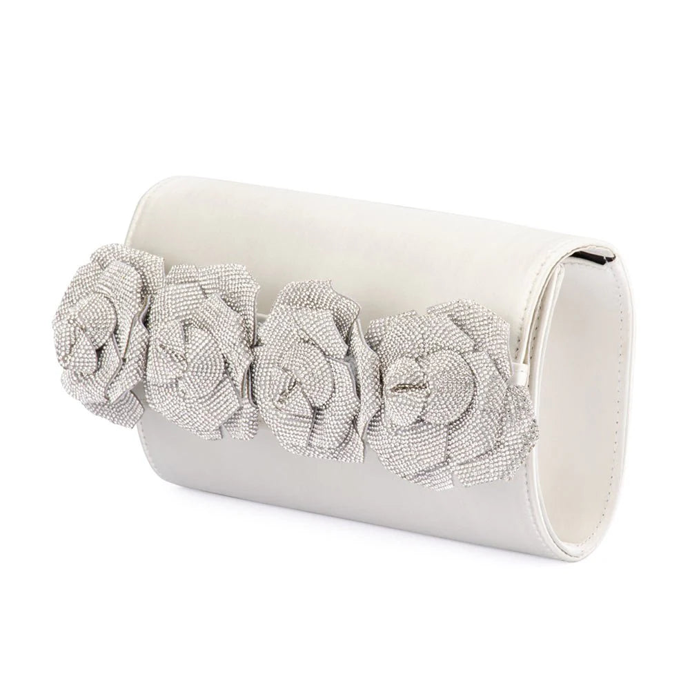 The STELLA Rosette Clutch is a stunning blend of sophistication and fun, featuring exquisite rosette detailing that will add a touch of romance to any ensemble. Perfect for special occasions, this eye-catching clutch is designed to make you stand out while keeping your essentials stylishly secure! Carry this clutch by sliding your hand under the rosettes to make a striking entrance or use the shoulder chain to go hands free.