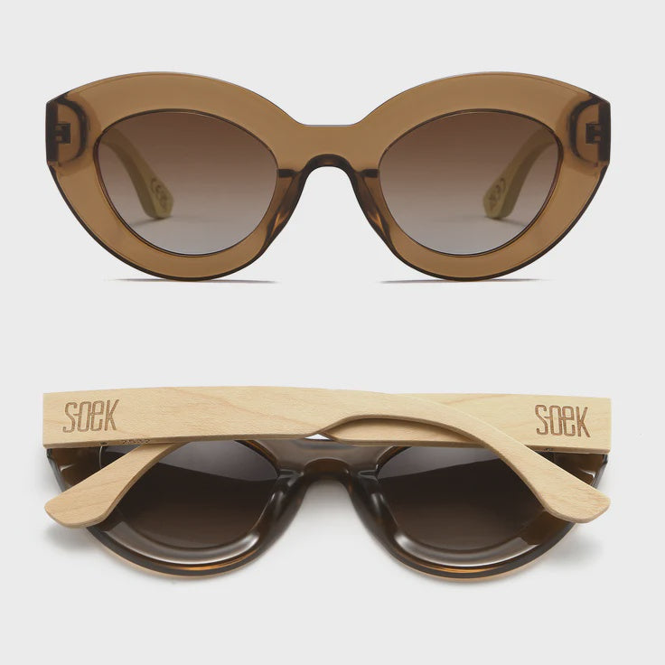 A true fashion icon, the Stevie sunglasses will effortlessly elevate your look with flattering curves and a touch of 50’s glamour. Finished in a timeless translucent mocha and fitted with SOEK’s UV400 polarised lenses, this frame is the must-have style of the season.