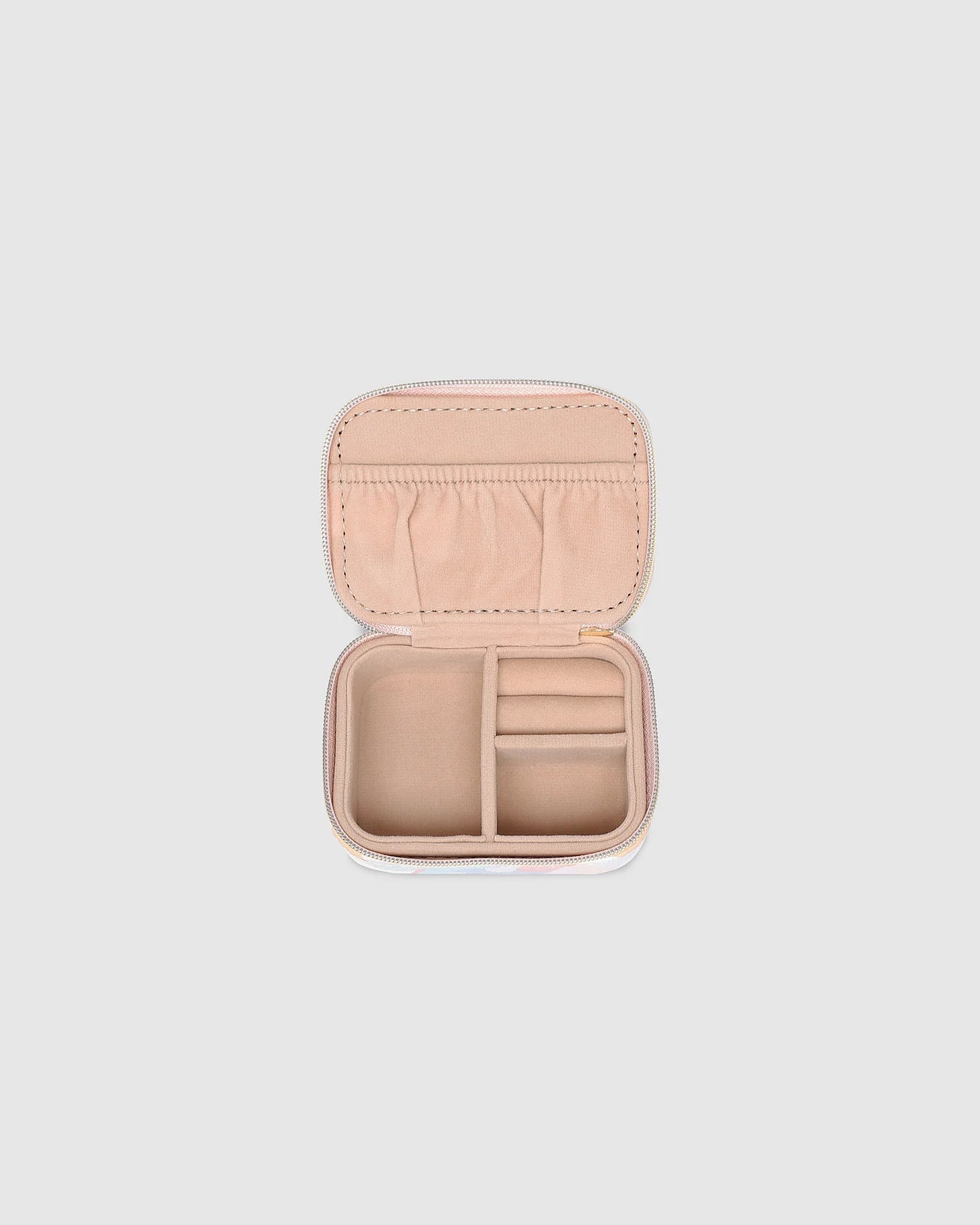 The Suzie Mosaic Pastel Jewellery Box is a sweet travel companion ready to store all of your rings, necklaces, bracelets, and earrings. Use every day and stow in your bag for on-the-go use, or pack for weekend adventures. Featuring three ring rolls, two compartments, and an elasticated slip pocket, your precious gems will be secured safely.