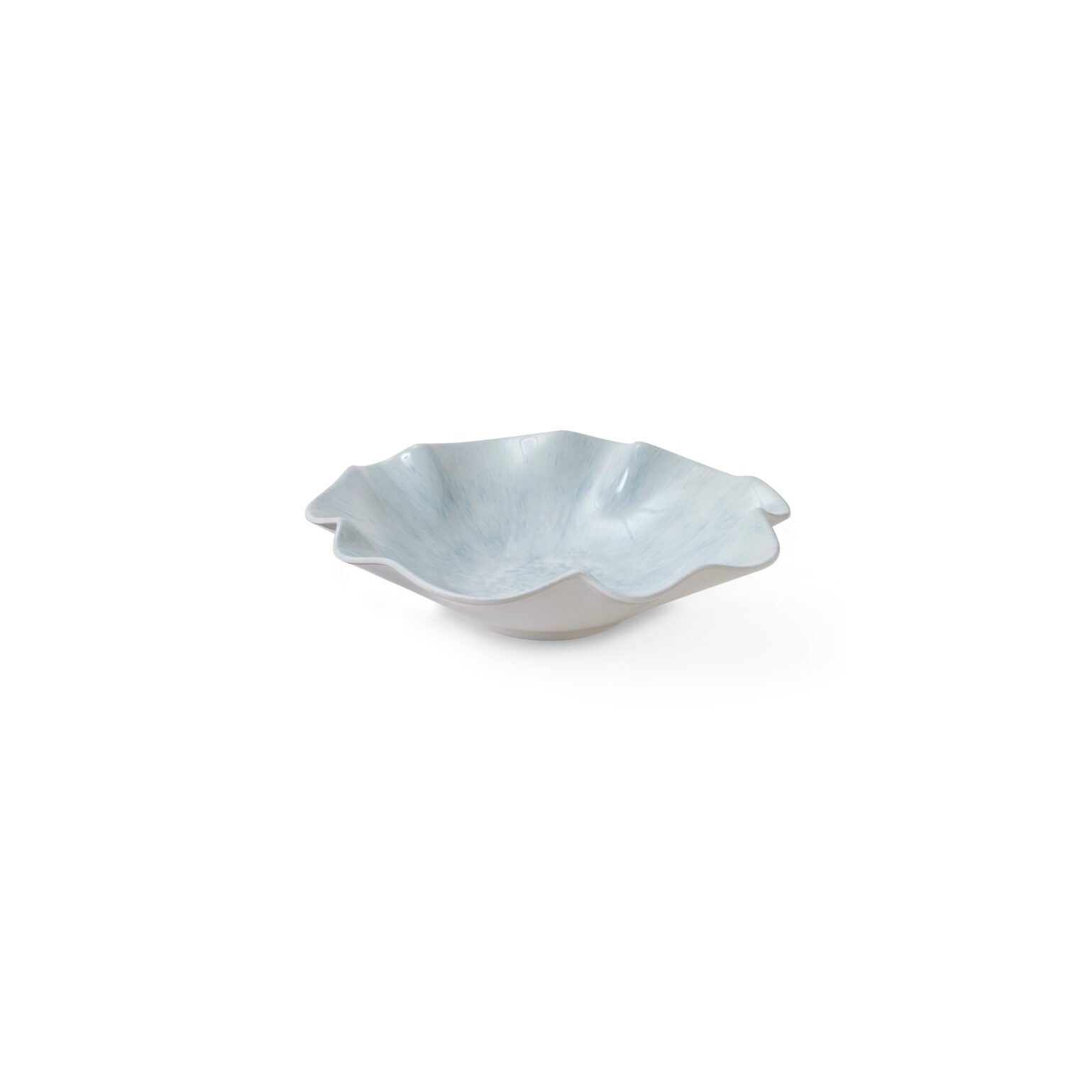 Small blue melamine serving bowl with irregular shape and mottled glaze colouring
