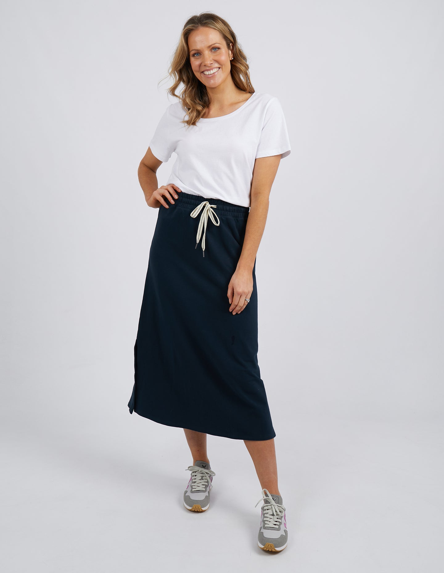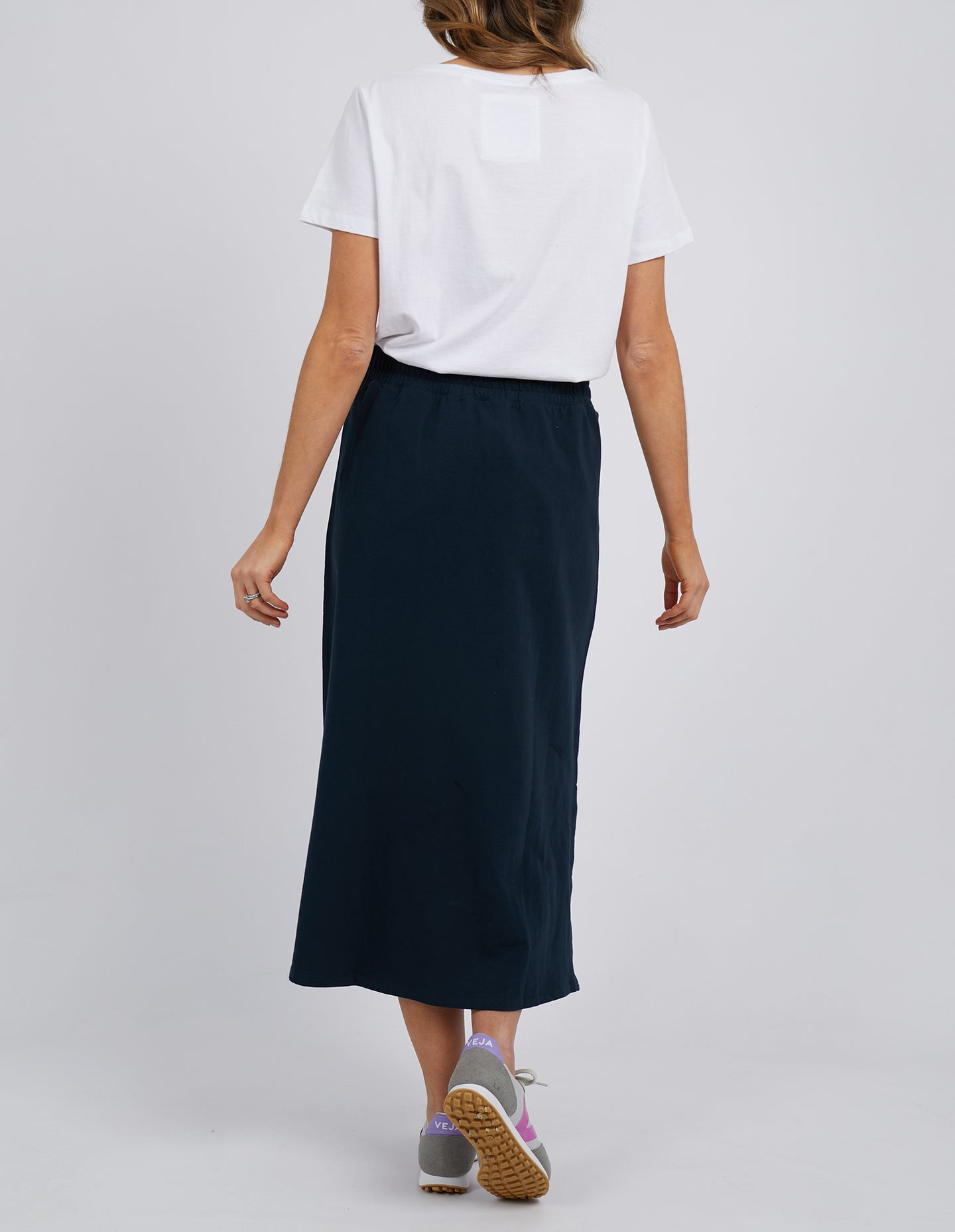 The Elm Travel Skirt Is A Maxi-Length Skirt Finishing Mid-Calf. It Is Super Comfy With A Relaxed Fit. Constructed In A Soft And Breathable Cotton Slub Fabrication It's The Perfect Style To Pack On Your Next Trip Or To Wear Casually throughout the entire year. The Travel skirt features include an easy to wear elastic waist and side split for movement.